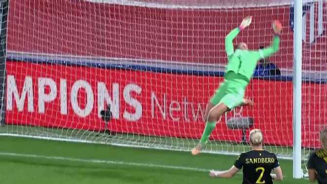 Phallon Tullis-Joyce makes a remarkable save against Atletico Madrid in the Women’s Champions League.