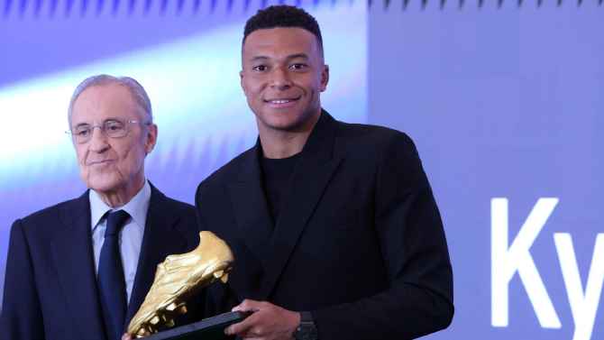 Kylian Mbappé is awarded the European Golden Boot at the Santiago Bernabéu.
