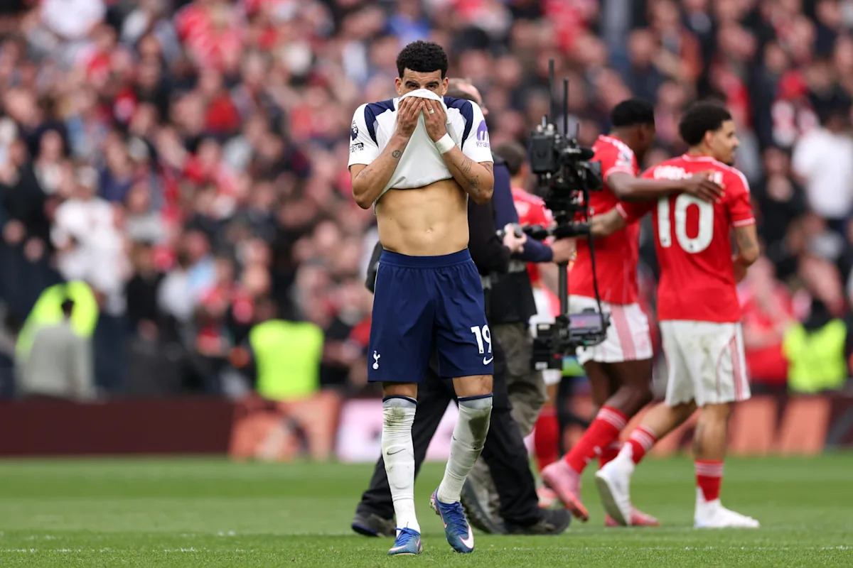 LONDON, ENGLAND – MARCH 22: Richarlison of Tottenham Hotspur shows his frustration as he exits the field after being substituted during the Premier League clash against Nottingham Forest at Tottenham Hotspur Stadium on March 22, 2026. (Photo by Ryan Pierse/Getty Images)