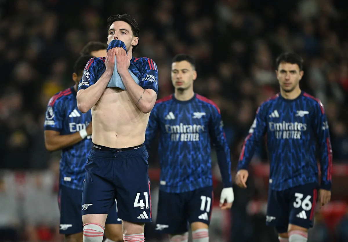 NOTTINGHAM, ENGLAND – JANUARY 17: Declan Rice of Arsenal dribbles during the Premier League match between Nottingham Forest and Arsenal at City Ground on January 17, 2026, in Nottingham, England. (Photo by Shaun Botterill/Getty Images)